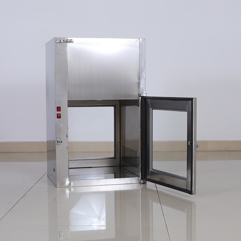 3. Pulire la finestra di trasferimento: aprire una delle porte, inserire la merce nella finestra di trasferimento, chiudere entrambe le porte e accendere l'interruttore della ventola. Dopo aver sentito il rumore della ventola, saranno necessari circa 5-30 minuti per purificare l'aria interna.